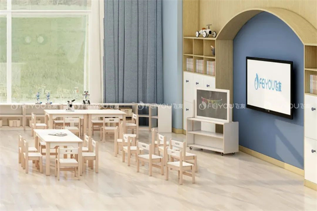雅致空间系列幼儿园家具简约流畅,明快实用。产品多功能组合、搭配自由,促进儿童积极主动地进行活动。