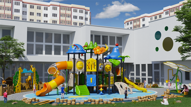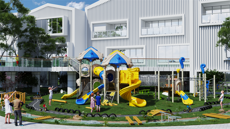 户外综合活动区是整园定制的十大区域之一,主要为户外组合滑梯,具备攀、爬、钻、荡、踩等多种功能,可锻炼幼儿攀登、爬钻、协调、灵敏等能力。