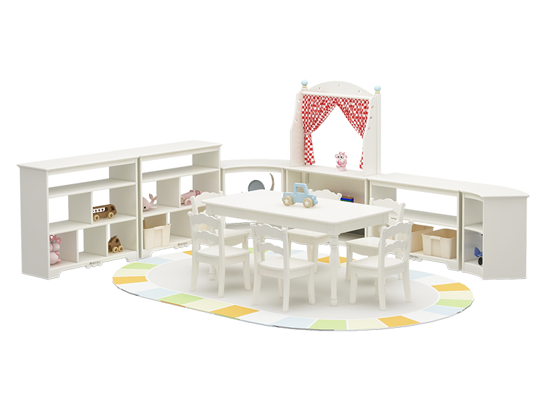 孩子们可以围绕着表演台开展各类情景游戏,对各种职业进行角色扮演,来模仿那些他们很感兴趣的生产劳动和生活体验,同时在扮演中培养沟通交流能力。