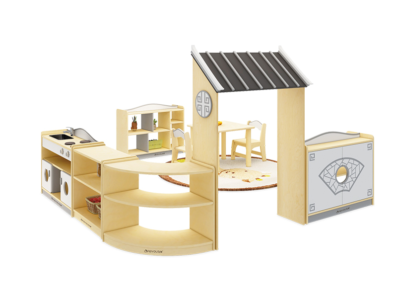 此区域可供老师开展游戏教学,锻炼幼儿的想象力与思维能力,启迪智慧,让他们在玩耍中培养基本的动手能力,开发他们的探索兴趣和创造力。