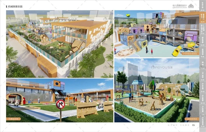 飞友2023年产品目录册更新了机械探索乐园、星游记、昆虫岛、奶酪盒子、小怪兽等幼儿园设计案例。