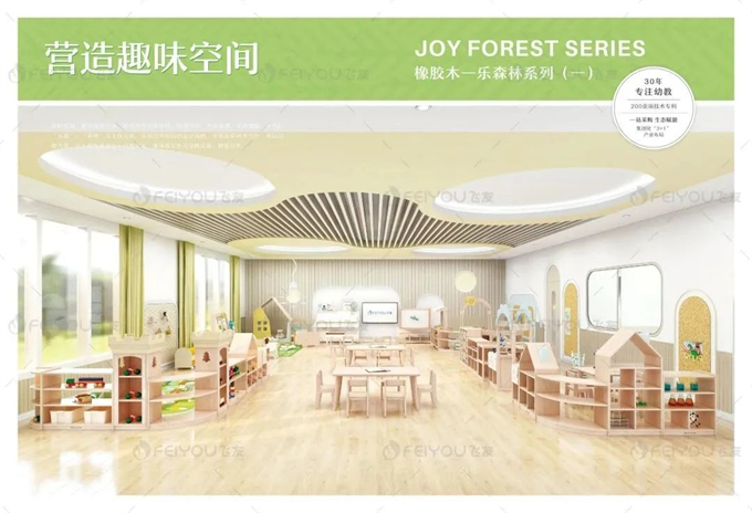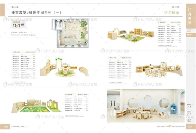 我们对每个系列进行了科学的区角规划,设有建构区、生活区、美工区、绘本区、科学区、扮演区、益智区、游戏区等不同区角。此外,今年家具目录分设托育装备板块,添加了托育感统产品。