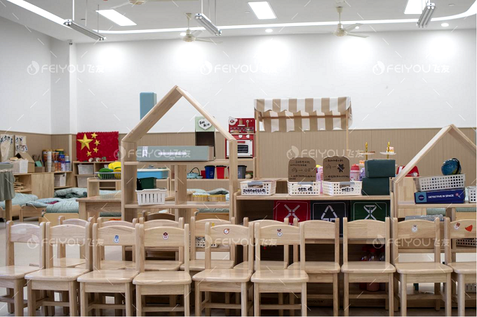 选择的幼儿园课桌椅,无论是形状或色彩,都要与整个幼儿园内部的整体设计相一致。