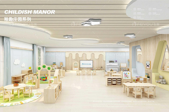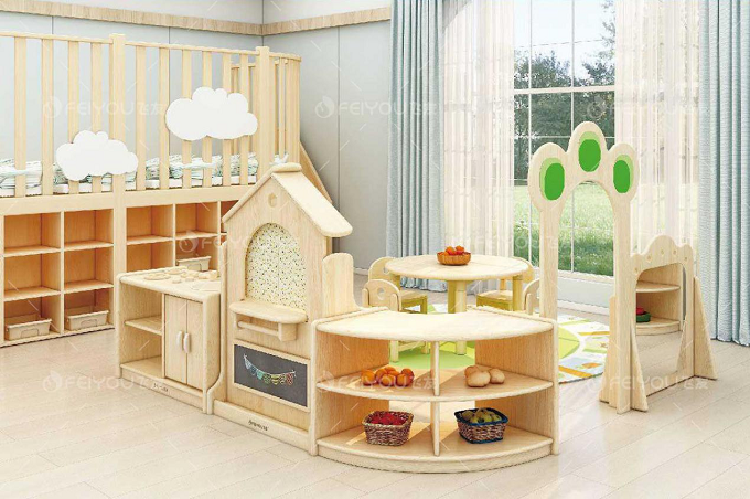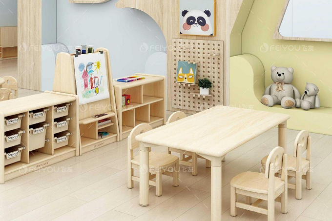 首先,风格上要能符合园所整体定位比如以现代简约风格为主的园所,往往会选择原木风格为主的家具。以蒙氏定位为主的园所会选择蒙氏家具。以自身品牌特色为主的园所会寻求在家具的款式或图案上能有近似或者带有自身品牌元素的图案或者符号。