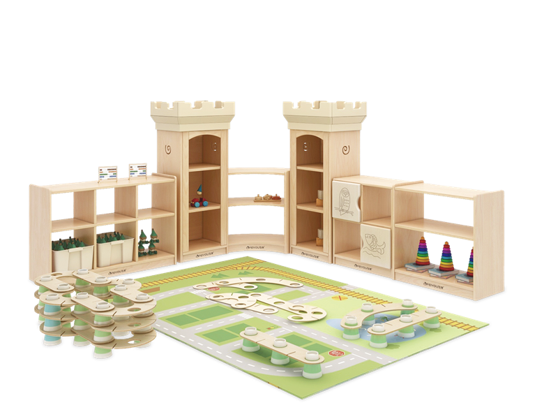 游戏桌和椅子:游戏桌和椅子通常用于幼儿进行小组活动、游戏和手工制作。它们通常具有坚固的结构和易于清洁的表面。