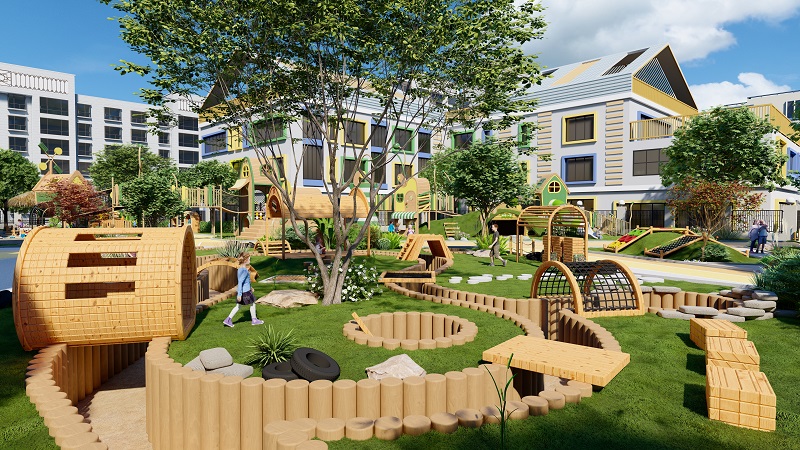 户外空间更是孩子的乐园。大型游乐设施、沙池、水池等一应俱全。孩子们在攀爬架上挑战自我,在沙池中构建梦想城堡,在水池里嬉戏玩水,尽情释放活力。大乐之野幼儿园,其户外设计与自然和谐共生,让孩子在自然中自由奔跑、探索,享受阳光与清风。