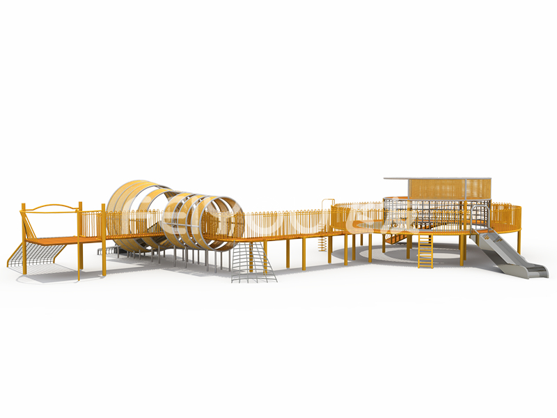 长廊-国内游乐设施厂家排行榜-室外无动力不锈钢组合滑梯