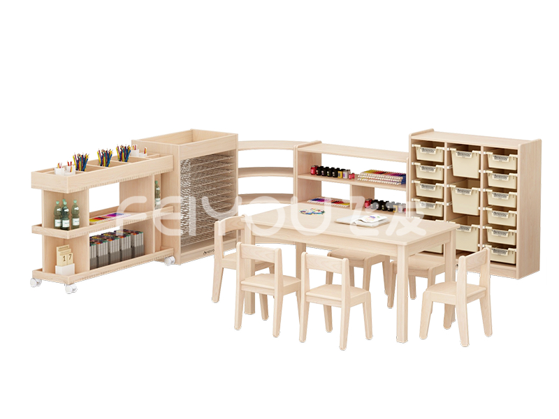 儿童橡胶木幼儿园大班家具-幼儿橡胶木托班家具