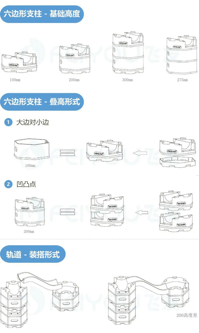 产品特点:百搭、垒高、拼接、延伸、轨道