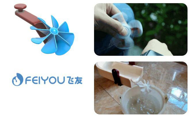游戏建议:将通用卡扣下方预留的连接点与水陀螺的延伸杆扣紧,安置在高低轨道出水端口。需要幼儿耐心调整好水陀螺对应水流的位置以及角度,利用水流冲击力带动叶片旋转。